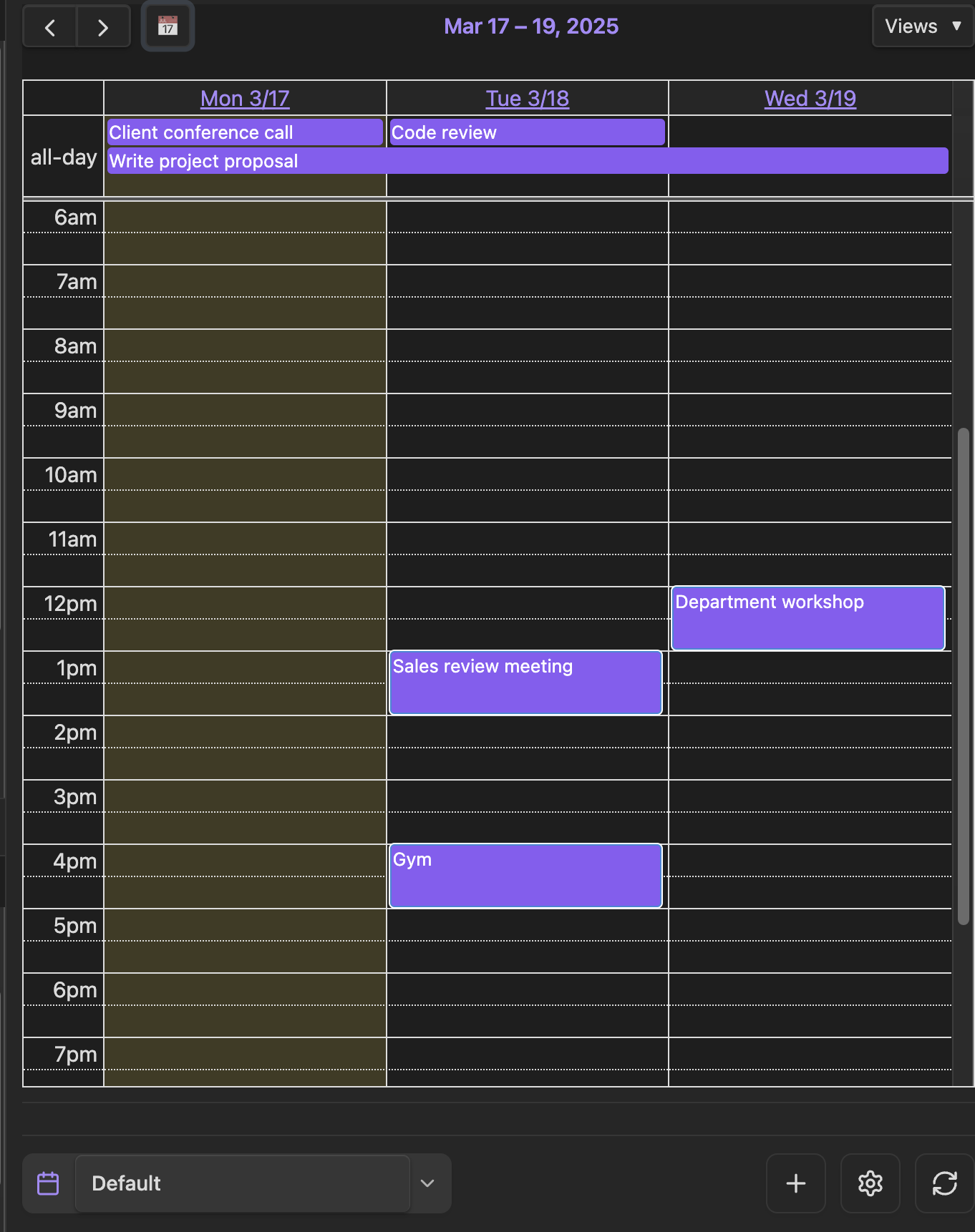 ![]() 3 Days View Focused view of upcoming days |