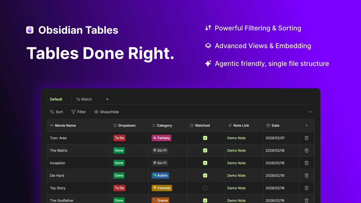 A powerful table plugin for Obsidian that lets you create, manage, and visualize structured data with an intuitive interface.