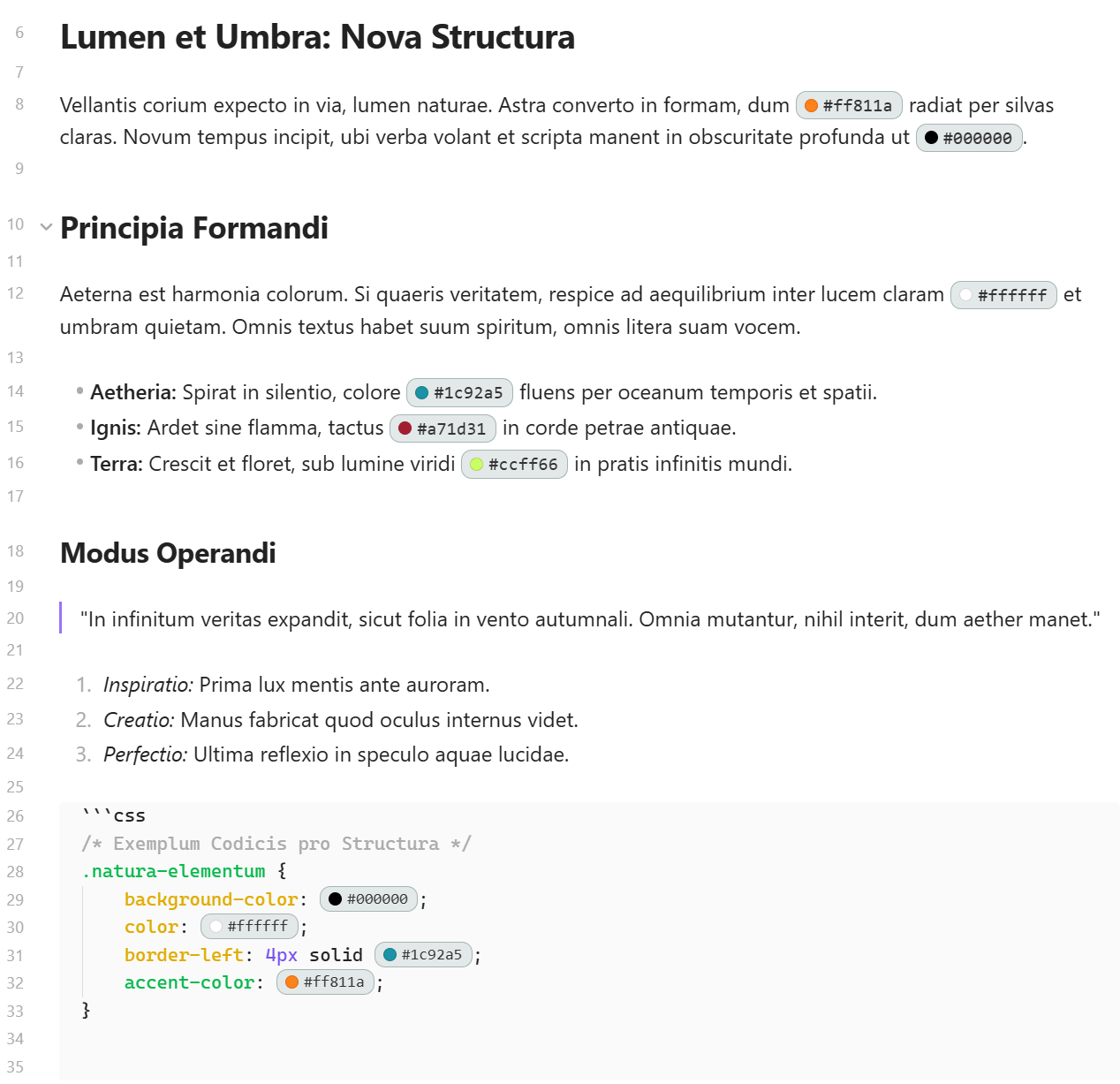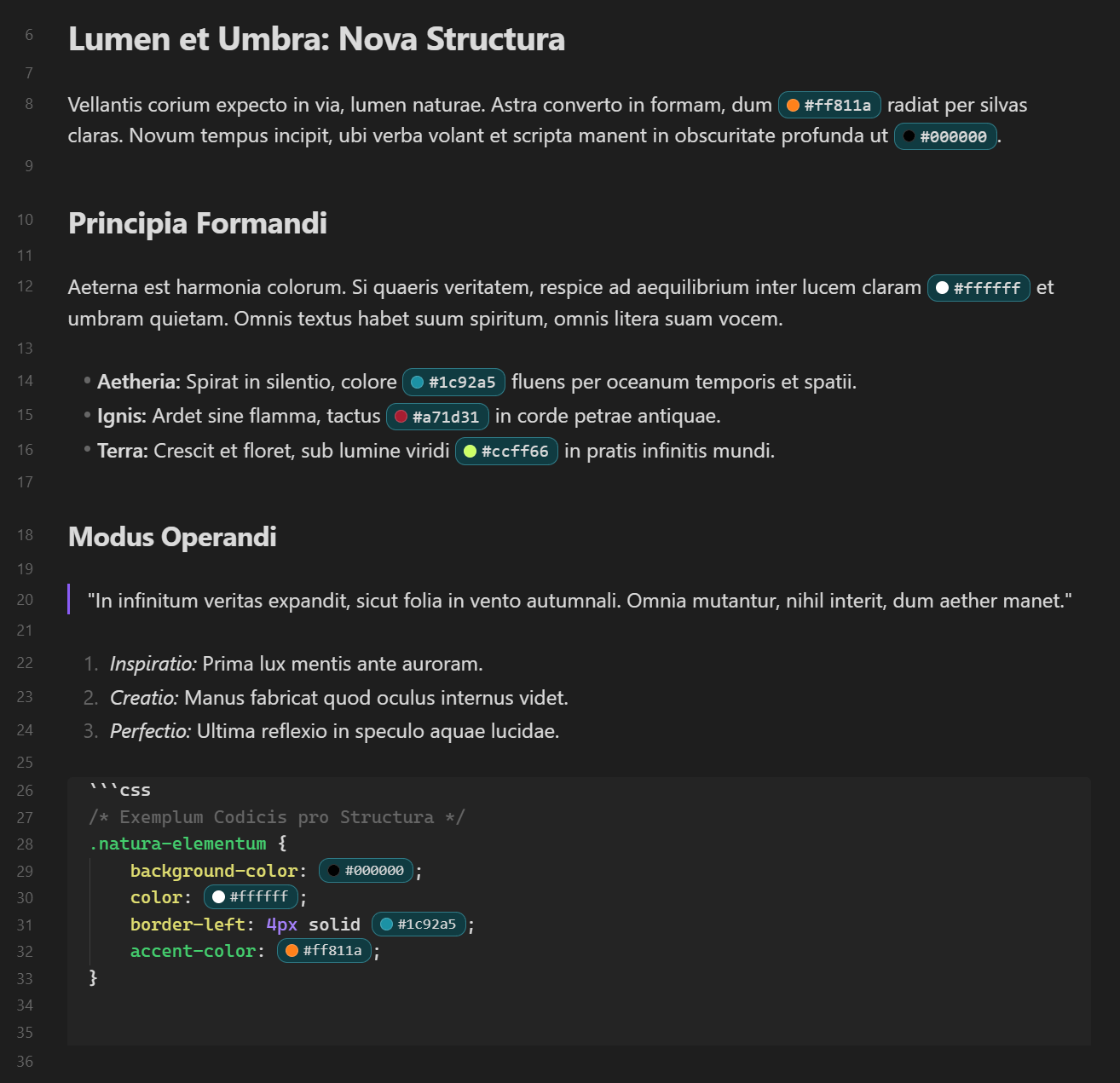 - Edit-friendly — when your cursor is on a hex value, the badge temporarily disappears so you can edit the raw text