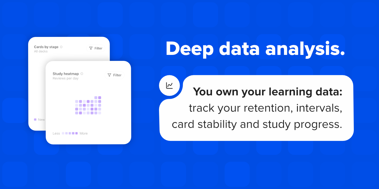 - Study analytics — charts, heatmaps, and retention trends at a glance.