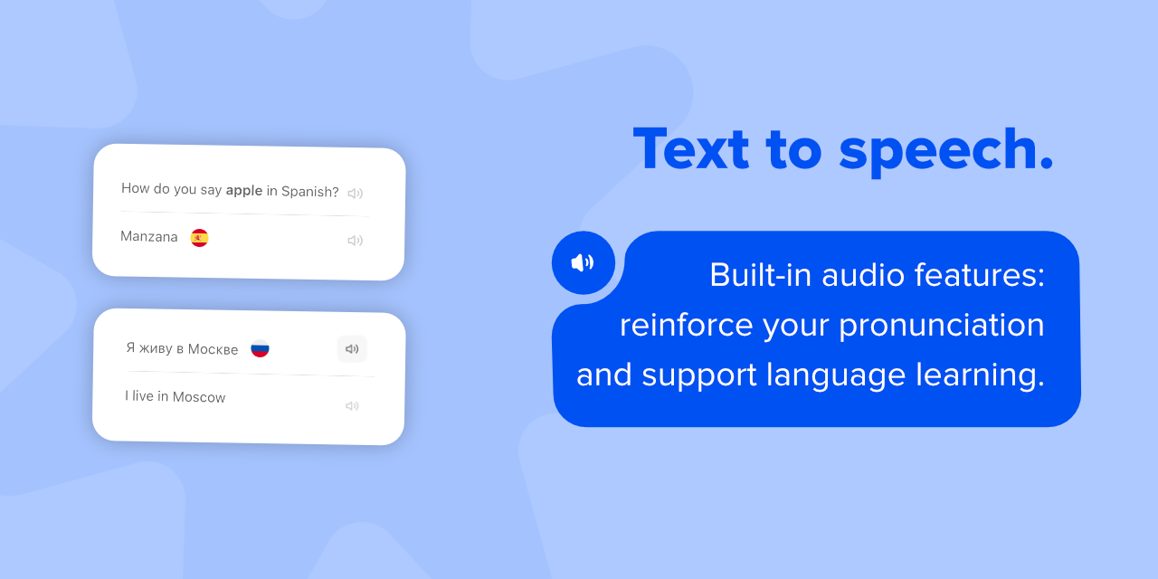 - Text-to-speech & audio — built-in playback for language learning and listening practice.