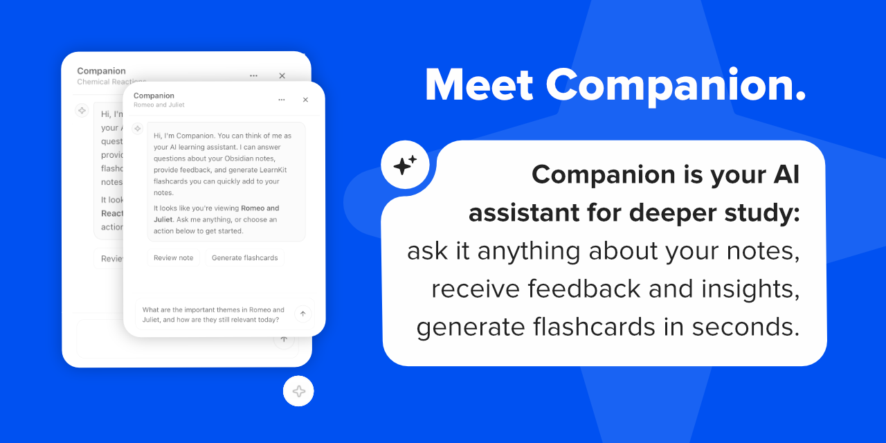 Companion is LearnKit's built-in AI study assistant for working directly with the notes you already have.
