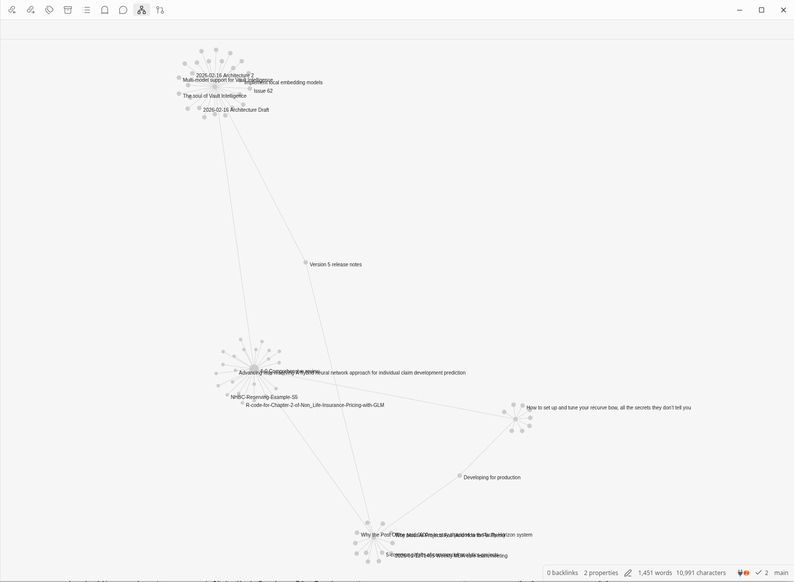 Vault Intelligence functions as a maintenance system. It identifies gaps in your notes by cross-referencing your writing with live web searches. It retrieves information based on the explicit structural links you built, rather than just matching text. It audits your tags to connect notes to existing topics, proposing new ones when needed. It connects to external tools—like local scripts or databases—under strict cryptographic security.
