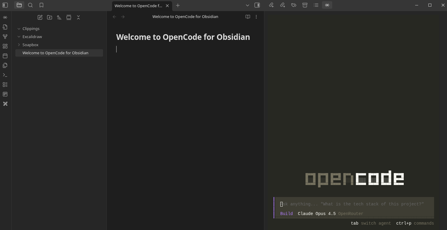 Run OpenCode directly in your Obsidian sidebar.