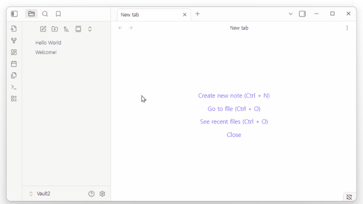 - File Explorer, Quick Switcher (Ctrl+O), Bookmarks, Search