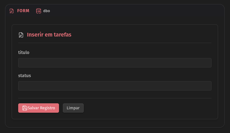 This renders a clean form with fields for id, title, and status. Fill it out and click "Save" to insert a row instantly!