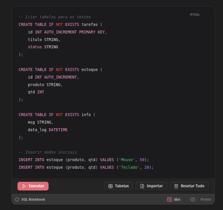 Execute MySQL queries directly from your notes using an in-memory database powered by AlaSQL. Features include multi-database management, CSV import/export, and SQL forms.