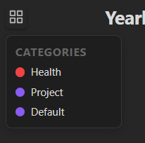 name: (Optional) The name of the event or note. If not provided, the plugin will use the file name.category: (Optional) Categorizes the note for color-coding. The plugin automatically assigns one of 12 vibrant colors to any new category it discovers.