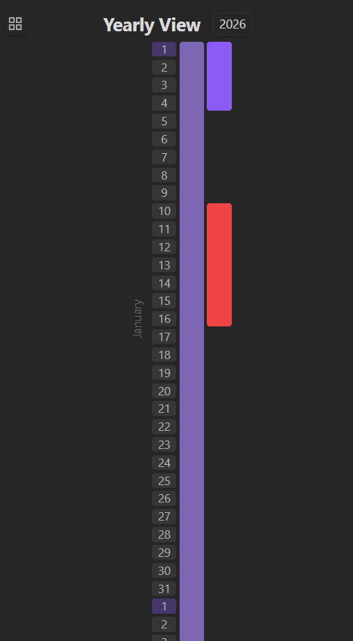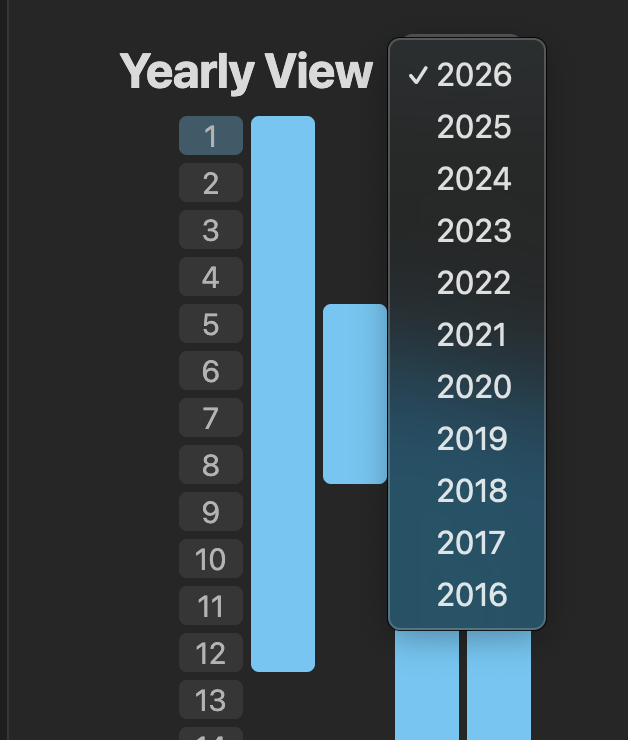 A visually intuitive vertical timeline plugin for Obsidian that allows you to track and visualize your notes across a yearly view.