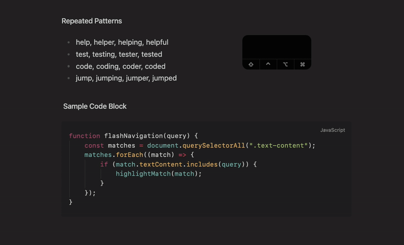 - Visual Styling: Colors and font weights for dimmed text and matches