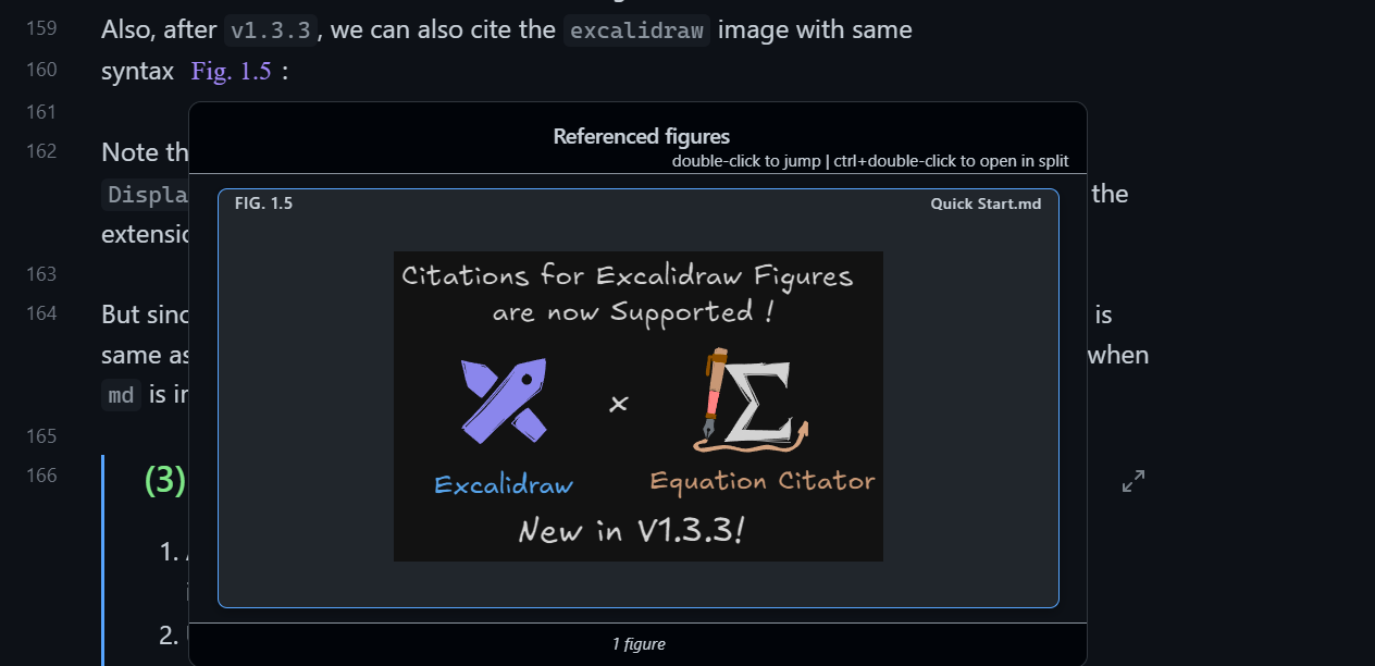 - Excalidraw, Excalidraw is supported in figure citation preview after version 1.3.3, you can cite an excalidraw picture by adding