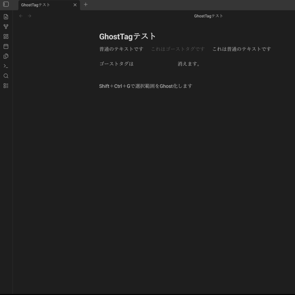 Ctrl+Shift+G) in Obsidian Settings > Hotkeys > GhostTag: Ghostify selection.