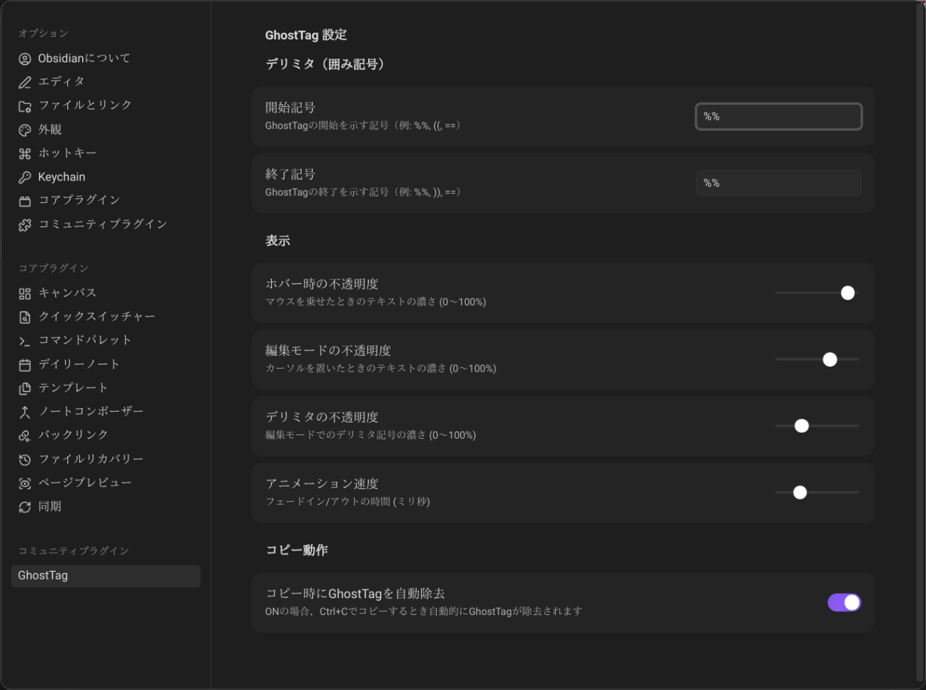 main.js,manifest.json, andstyles.cssto.obsidian/plugins/ghost-tag/ - Enable the plugin in Obsidian