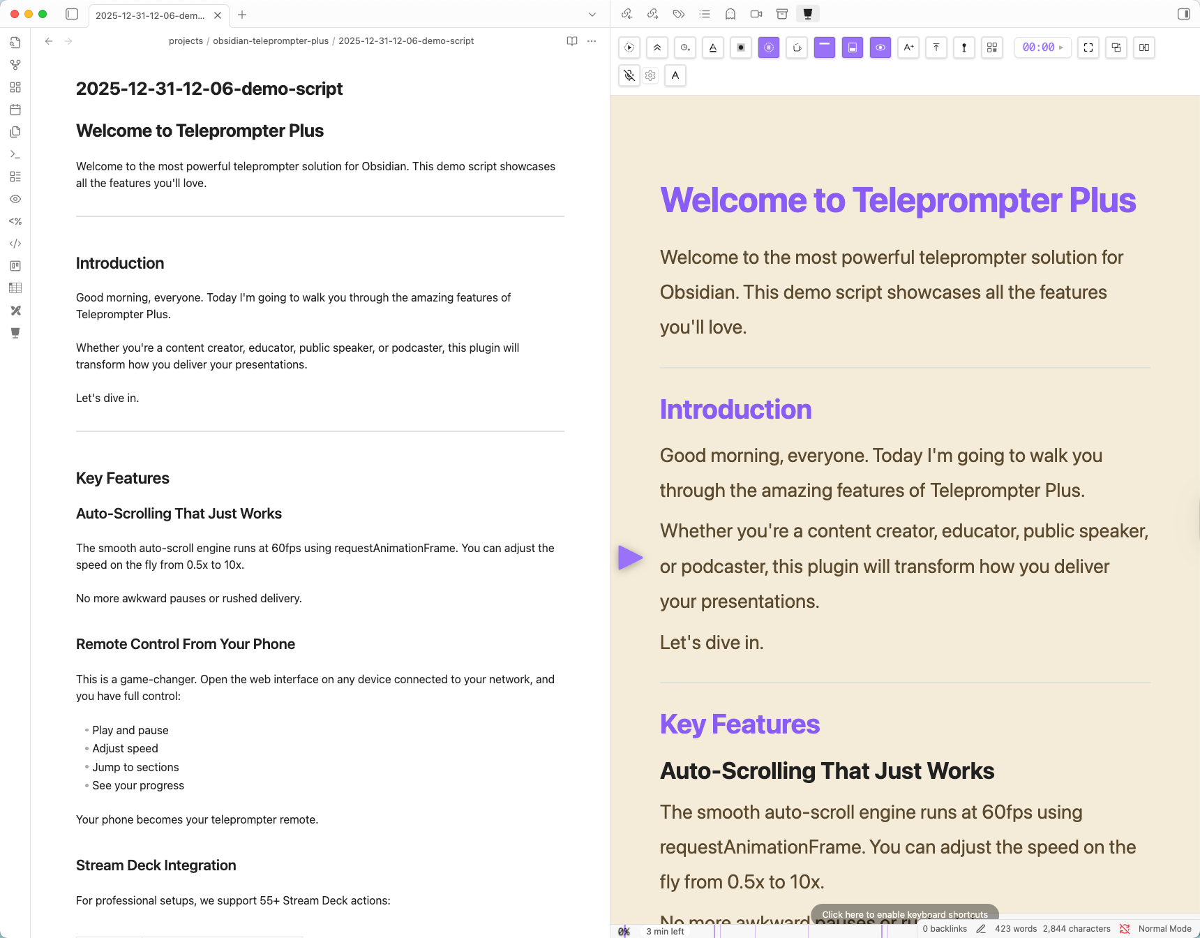 Transform your notes into professional presentations with Obsidian Teleprompter Plus š¬