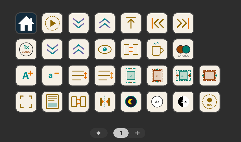 - 8 action categories - Playback, Speed, Font, Navigation, Display, Utility, Countdown, Flip