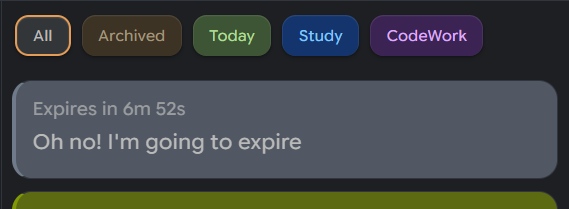 Set expiry times with optional auto-archive and a time-left pill display.