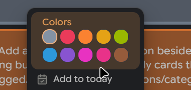 Color-code your cards for visual organization. Enable two row color swatches in two rows for a more compact layout.