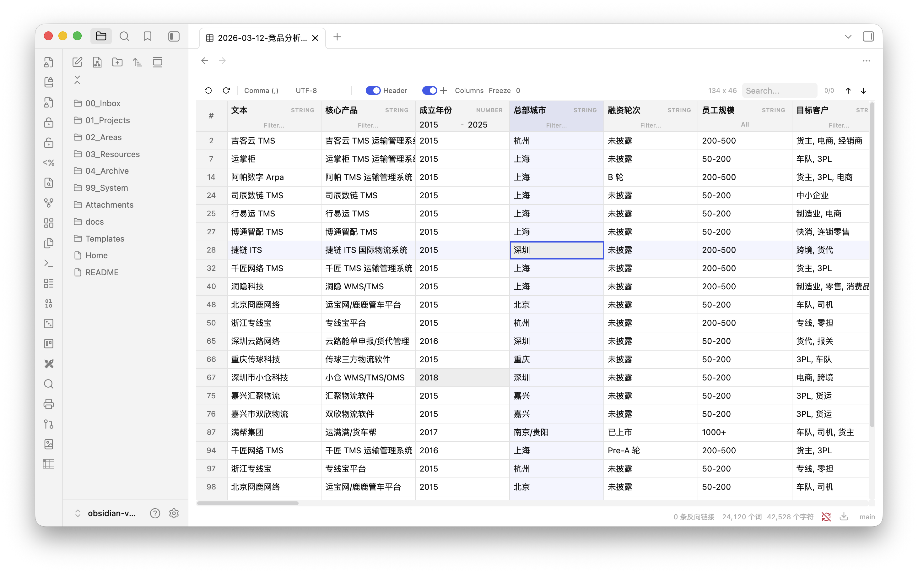 A fast, feature-rich CSV/TSV editor for Obsidian. Edit tabular data directly in your vault with an Excel-like experience.