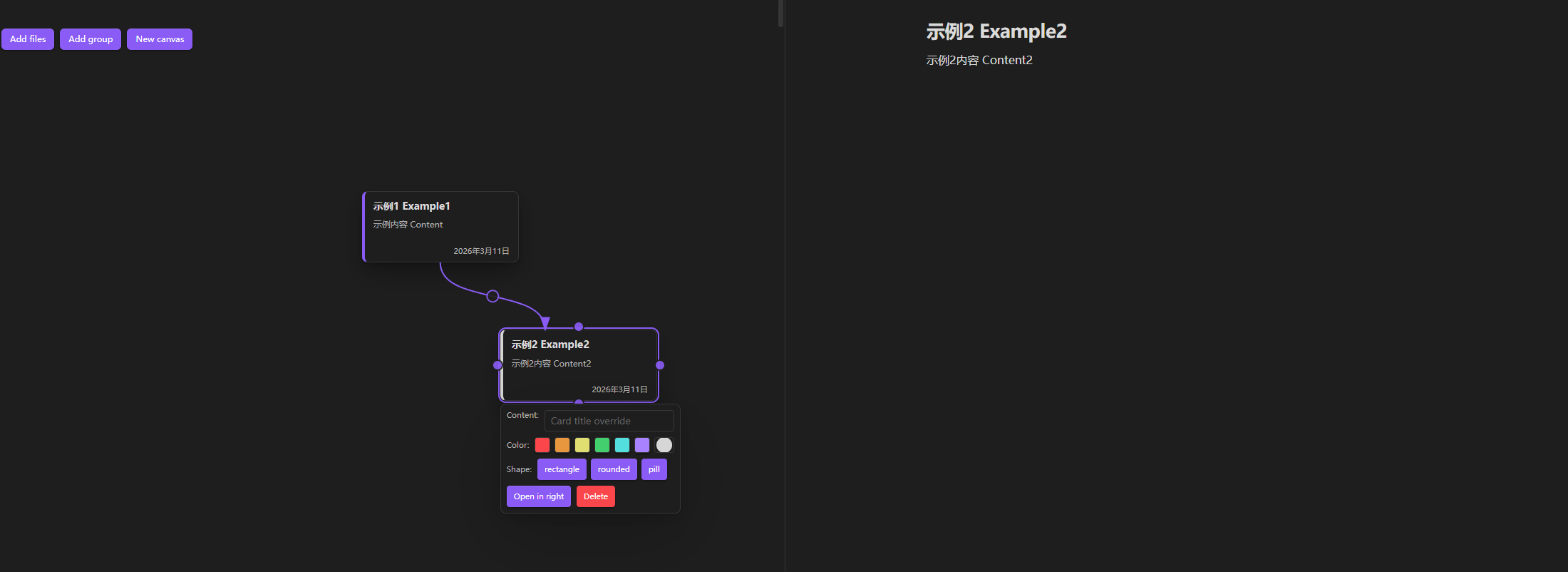 这是一个canvas形式进行文件管理的插件,使用者可以通过card来管理所拥有的文件资产,构建其中的逻辑关系,并能轻易通过该canvas进行文件内容的更改。
