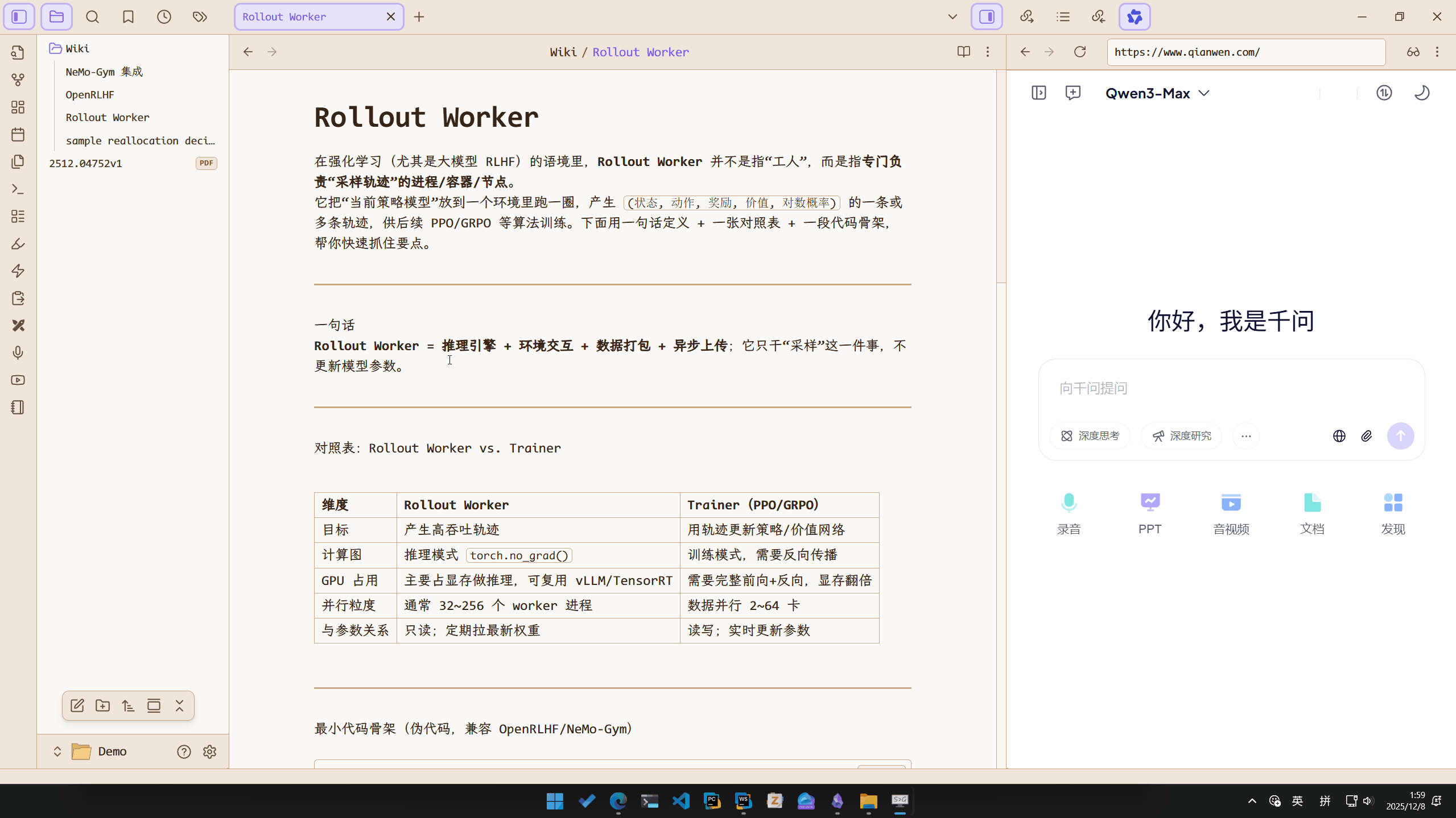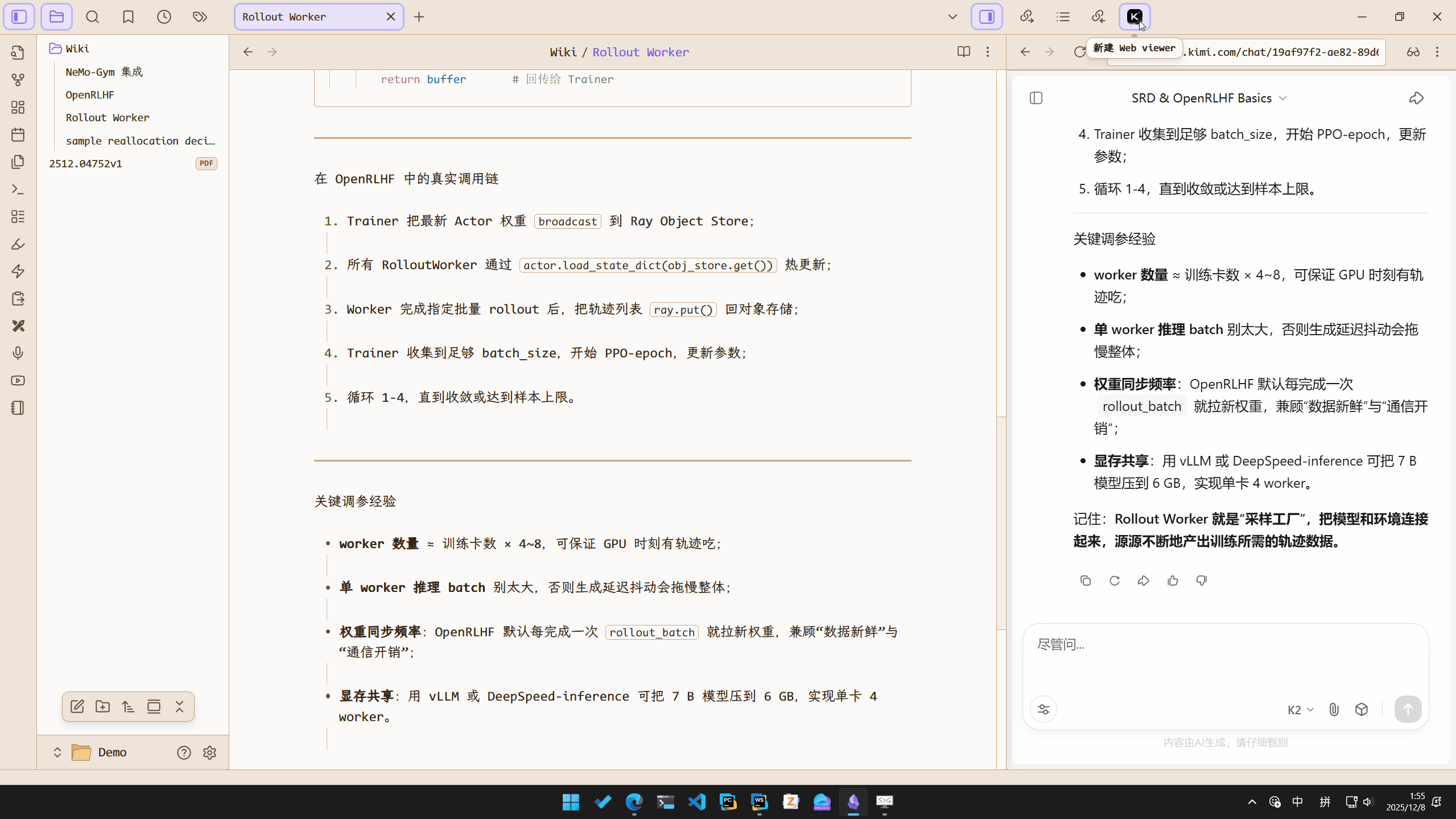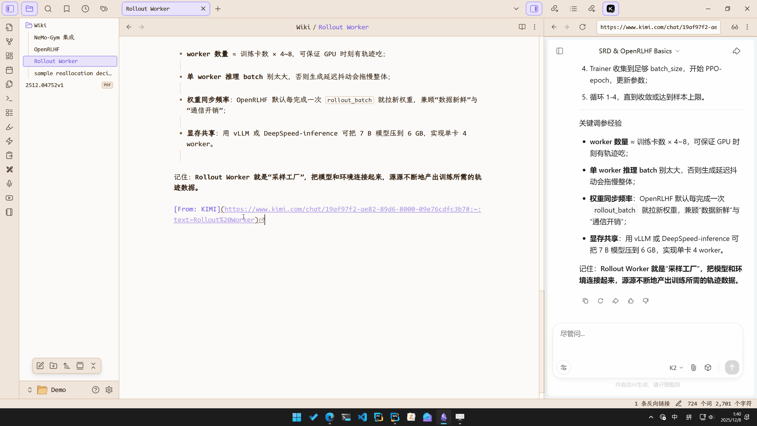 Select text in your notes or PDFs, automatically send it to the LLM web panel in the sidebar to start a conversation, intelligently save responses to Wiki notes, and create bidirectional reference links in the original text.