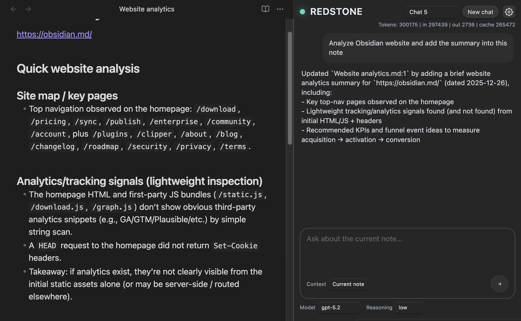- Chat with Codex to answer questions or create/edit notes in your vault.