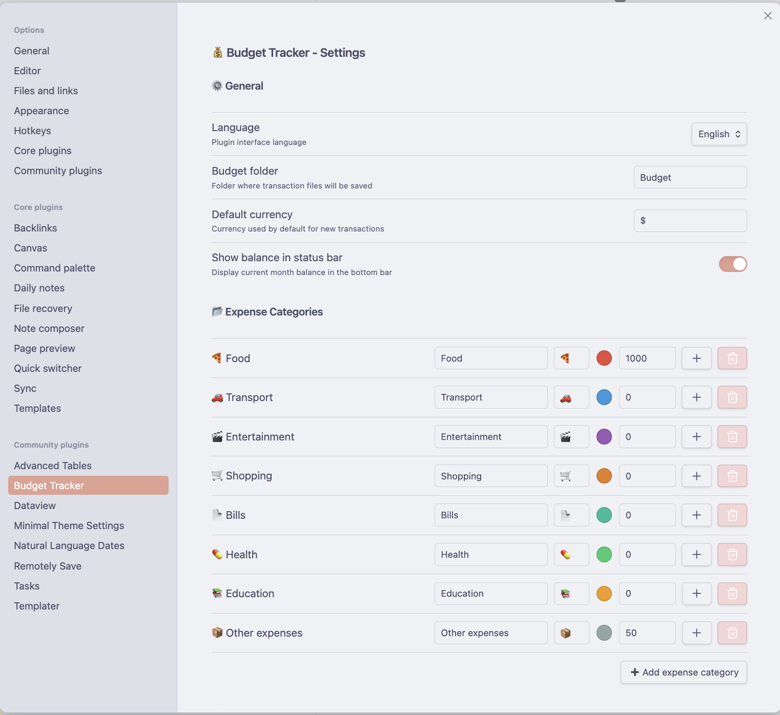 Customize categories, currency, and language settings to fit your needs.