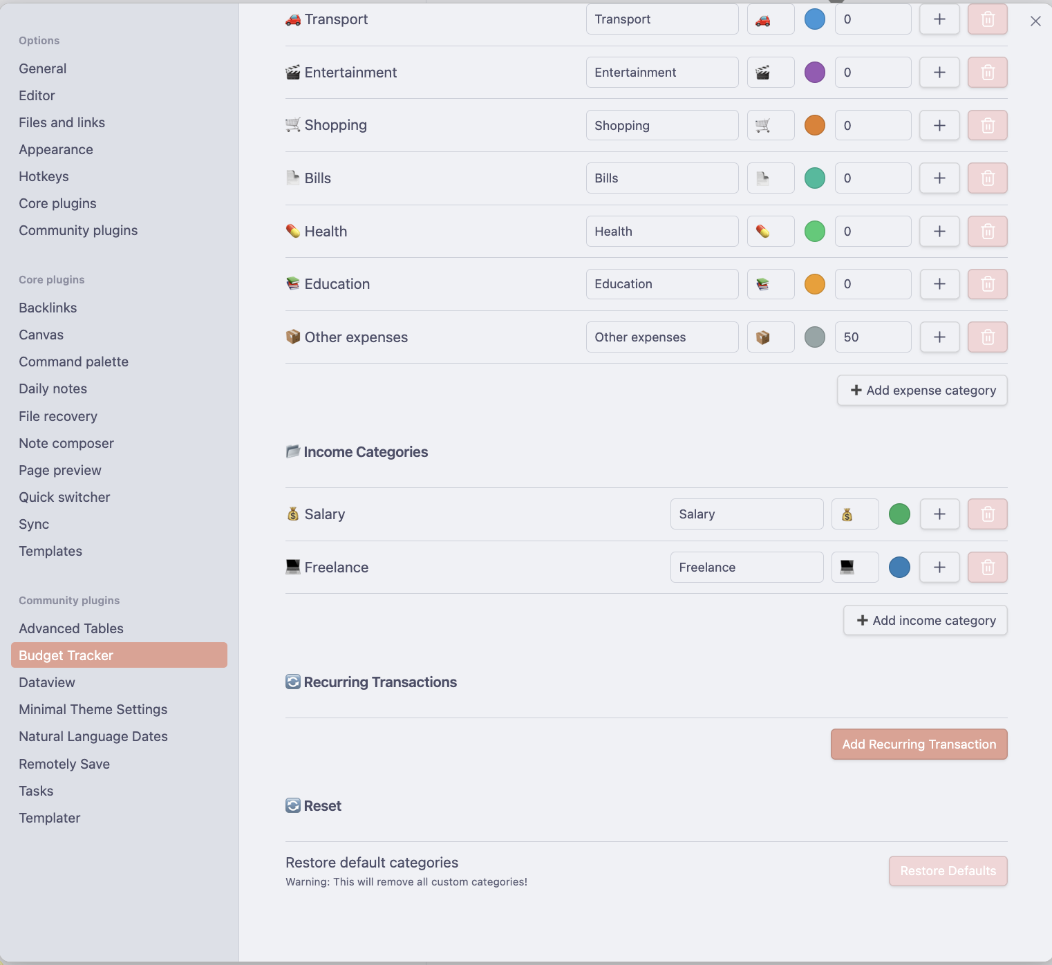- Go to Settings > Categories to manage your structure.