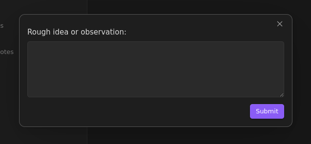 | 1 | Prompt | "Rough idea or observation:", multi-line, variable: idea |