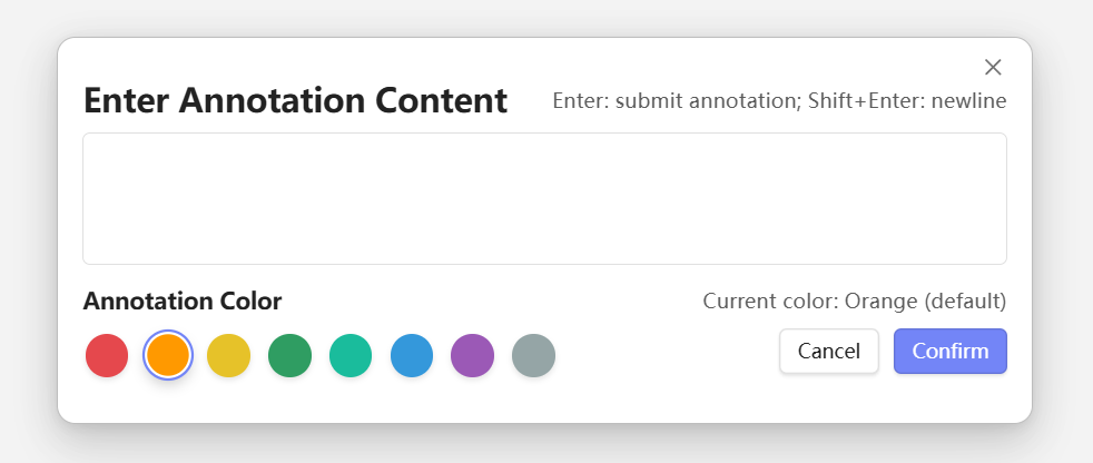 - Input Flow: Enter submits the annotation; Shift+Enter inserts a newline.