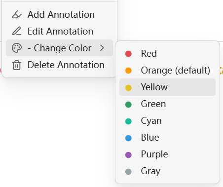 - Allow users to select different annotation colors (e.g., Red for questions, Green for ideas, Yellow for tasks) directly in the popup.