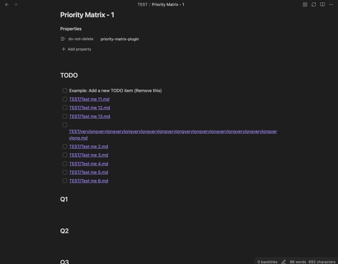 Create and manage priority matrix notes with auto detection of tasks from your vault. A plugin made for Obsidian