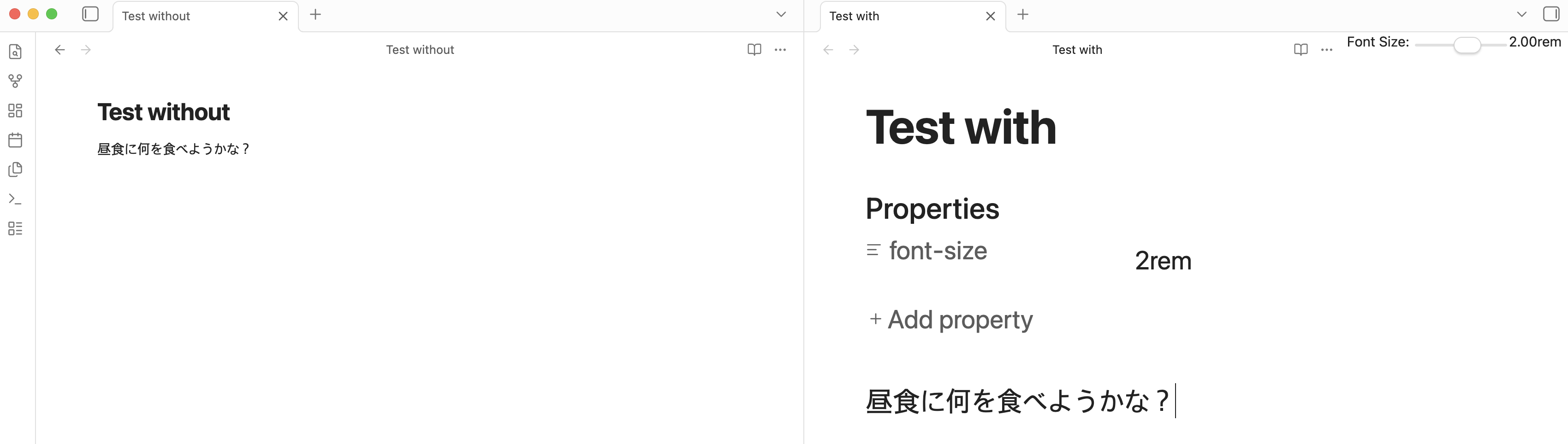 font-sizeproperty in note frontmatter - Real-time updates: Font size changes are applied immediately when you modify the property