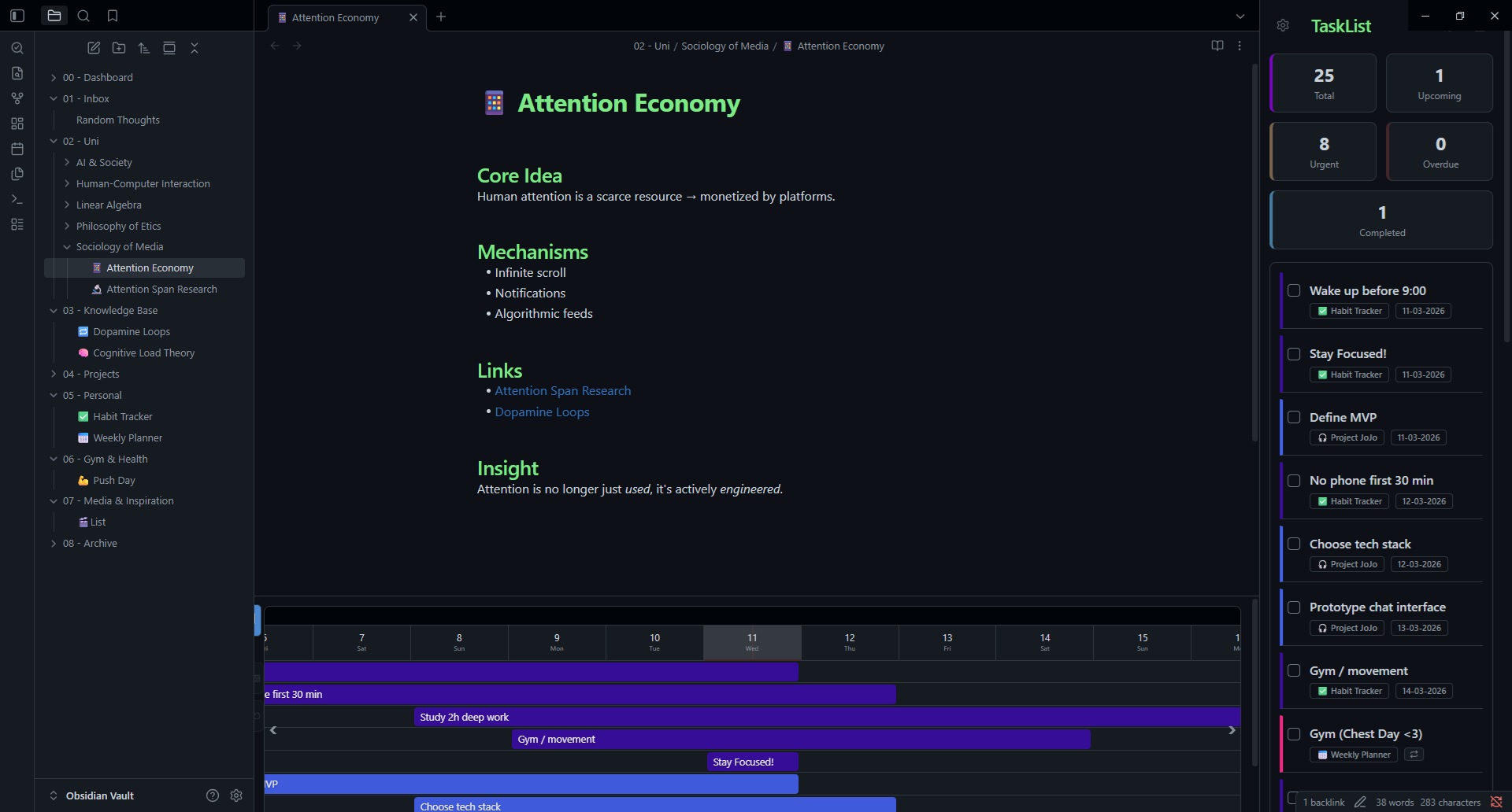 TaskLens is a native, widget-based dashboard that turns Obsidian into a powerful task command center. Visualize deadlines, manage tasks, and track project progress without leaving your vault or changing how you write.