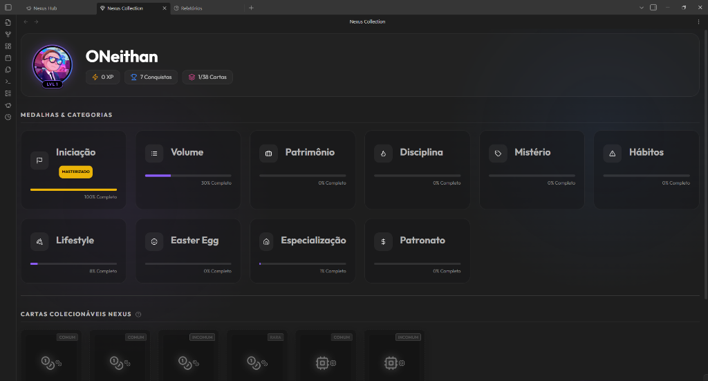 - Nexus Trading Cards: Um jogo de cartas colecionáveis completo dentro do seu financeiro.