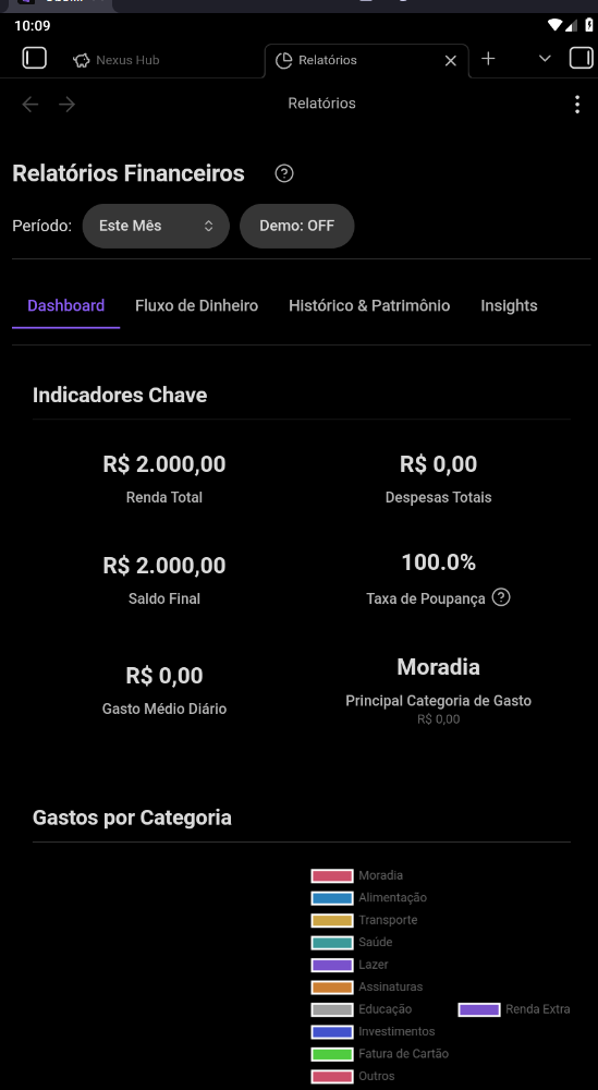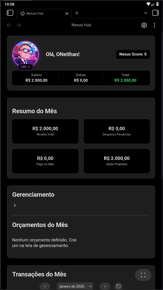 O Nexus Hub agora é totalmente compatível com celulares e tablets Android! A interface foi reconstruída para ser responsiva, com navegação otimizada e interações por toque.