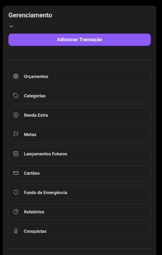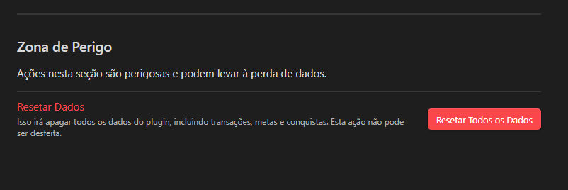 - Precisa recomeçar do zero? Use o botão "Resetar Todos os Dados" para limpar transações e conquistas, mantendo apenas as configurações vitais.