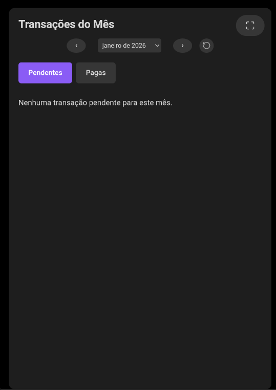 - Resumo do Mês: Veja Receitas, Despesas Pendentes e Saldo Projetado em tempo real.