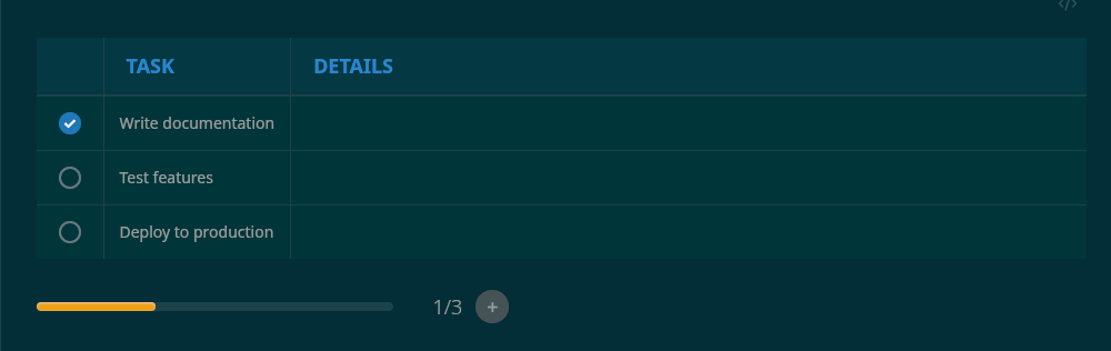 Hover over the table to reveal the + button, which allows you to add new tasks without editing the markdown directly. (Can be changed to permanently visible in the plugin settings)