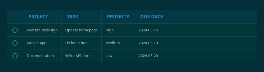 [ ] Mobile App | Fix login bug | Medium | 2024-03-10