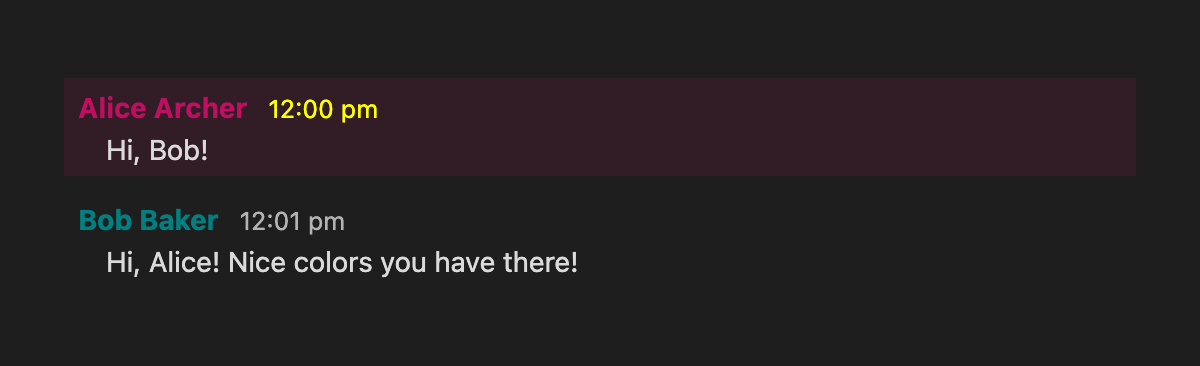 Additionally, each message entry is provided the following data attributes to allow styling messages by specific authors across all Chatterbox blocks: