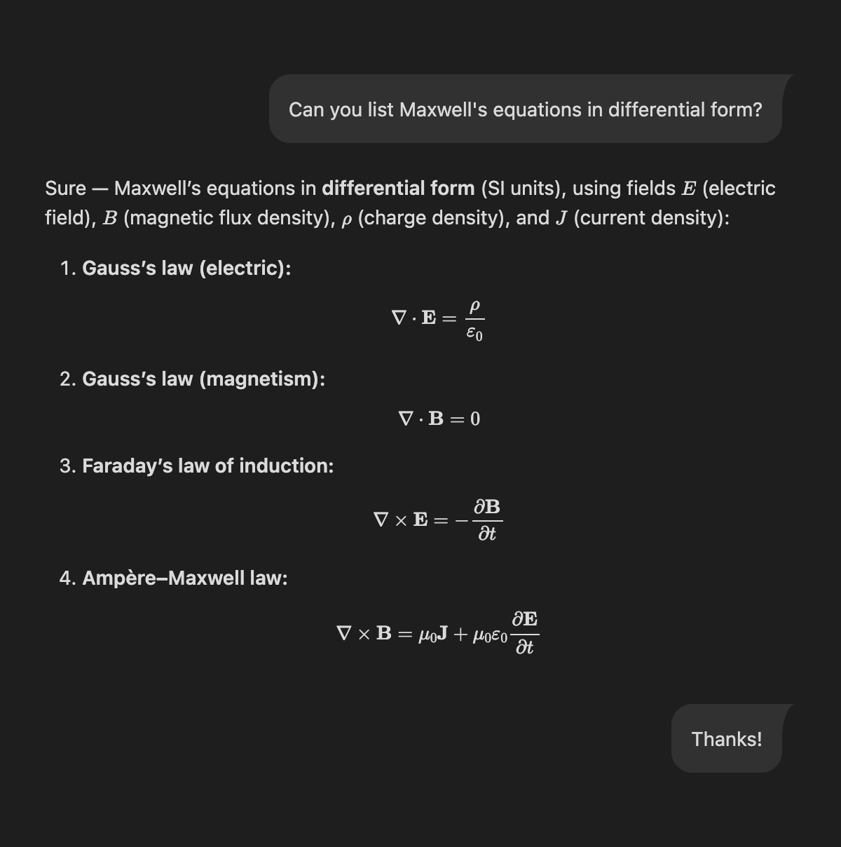 In addition to the other multi-line entries, Chatterbox provides a Markdown block entry type which enables you to embed Obsidian Flavored Markdown content within a conversation. This means anything you can do inside an Obsidian note should work inside a Chatterbox Markdown block as well.