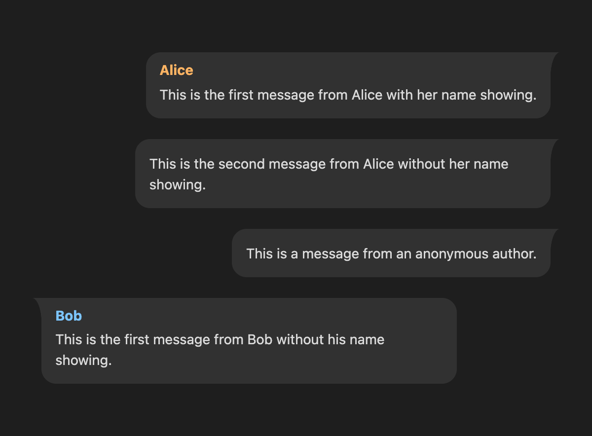 Sometimes, we want to hide the author's name (e.g. when displaying consecutive messages from the