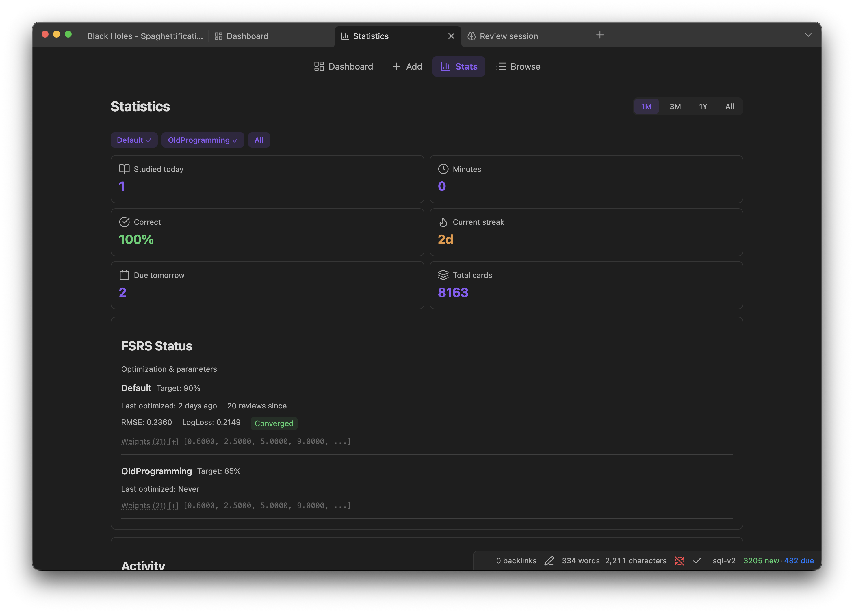 - FSRS v6 Algorithm — State-of-the-art spaced repetition with 21 trainable parameters. Optimizes to your personal memory patterns after 400+ reviews.