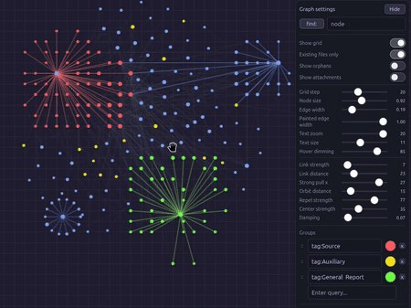 GraphFrontier is not a plugin for Obsidian Graph View. It is a fully independent plugin with its own physics engine, designed to implement ideas that are not possible in the standard graph plugin.