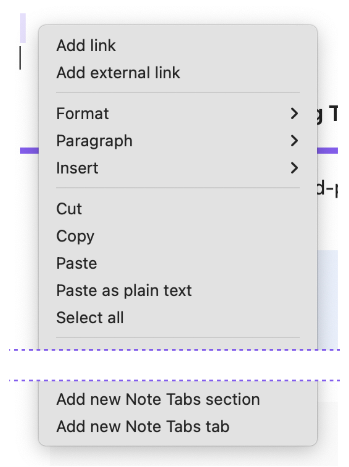 - Select "Add new notetabs section" to insert an entirely new tabbed section, or