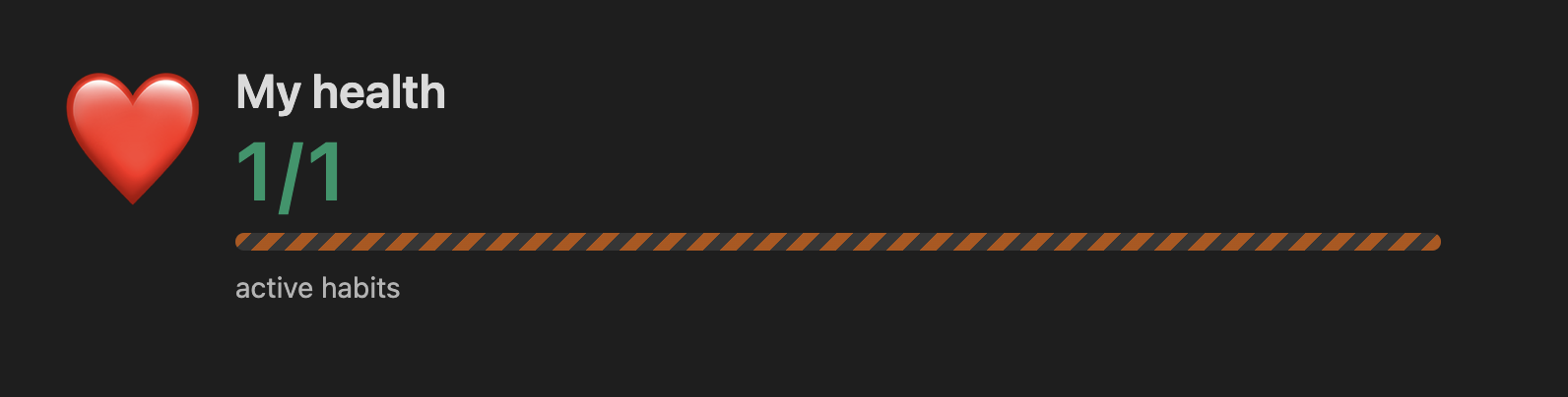 Adaptive warnings and styled progress — warning windows render amber striped segments, while active habits stay emerald and inactive habits gray.