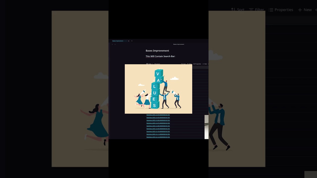 Bases Improvements automatically injects a search input field above every base code block in your notes. As you type, the plugin dynamically updates the base block content to include a file.name.contains("value") filter, making it easy to search and filter your query results on the fly.