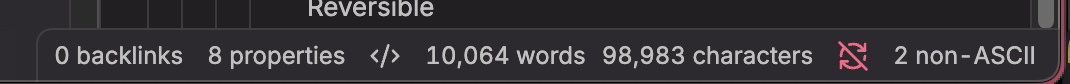 Status bar counter -- shows the number of non-ASCII characters in the current note alongside Obsidian's word and character counts