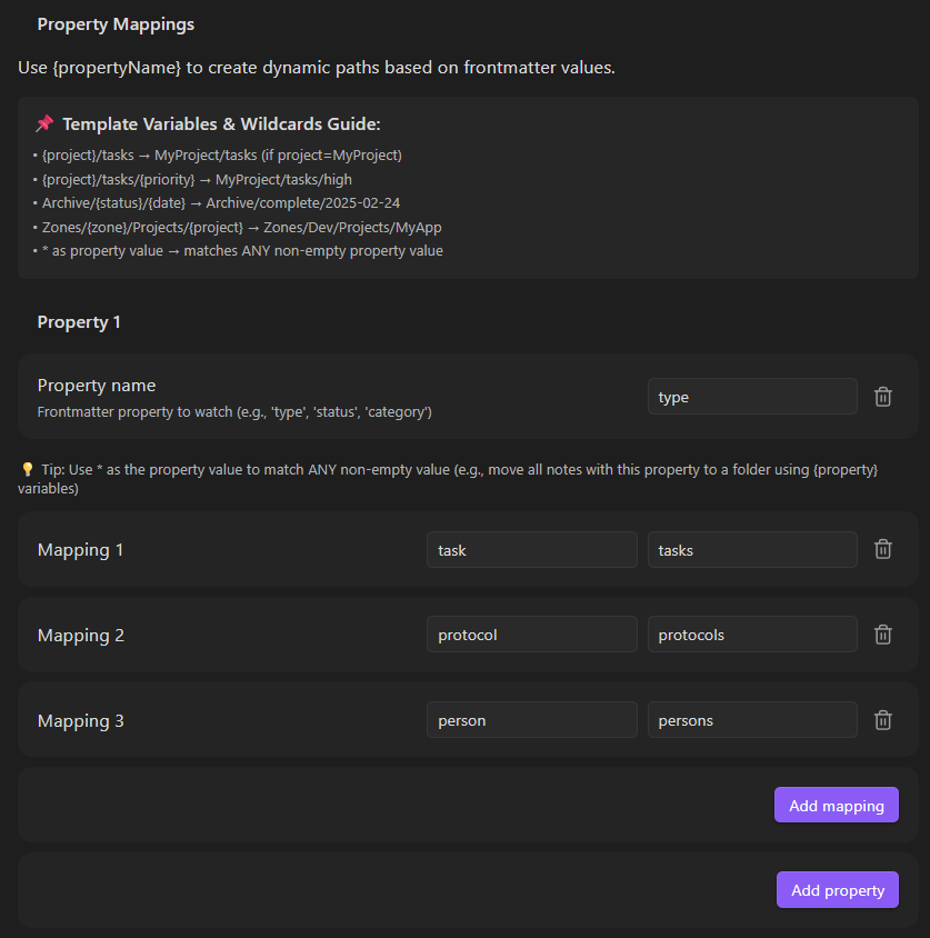 - Multiple property mappings: Define value-to-folder rules per property