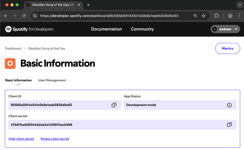 - Credential rotation: If you believe your credentials have been compromised, revoke them in the Spotify Developer Dashboard and generate new ones